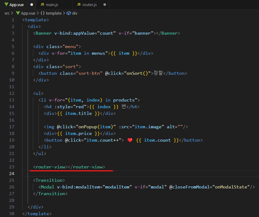 - template에 컴포넌트 태그 입력해줌